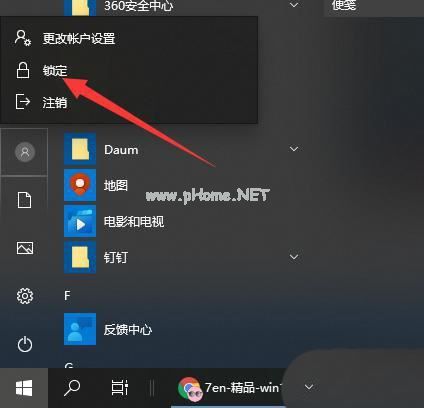 可以通过开始菜单。鼠标移动到关机右侧的扩展键,在扩展菜单中选择“锁定”。