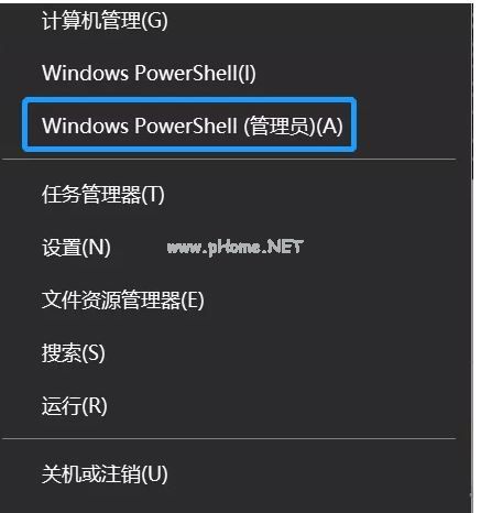 使用鼠标右键点击桌面左下角的开始菜单按钮,选择Windows PowerShell(管理员)(A)。