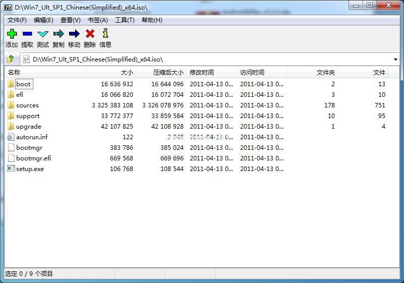 1、首先,wim 格式的文件一般都是在 Windows 系统镜像中,我们可以随便下载微软原版个 Windows 7、8、10 系统,使用 7-zip 打开系统镜像。