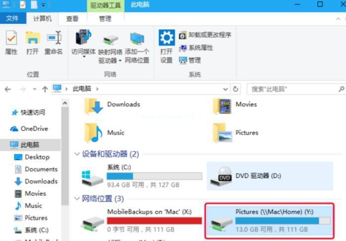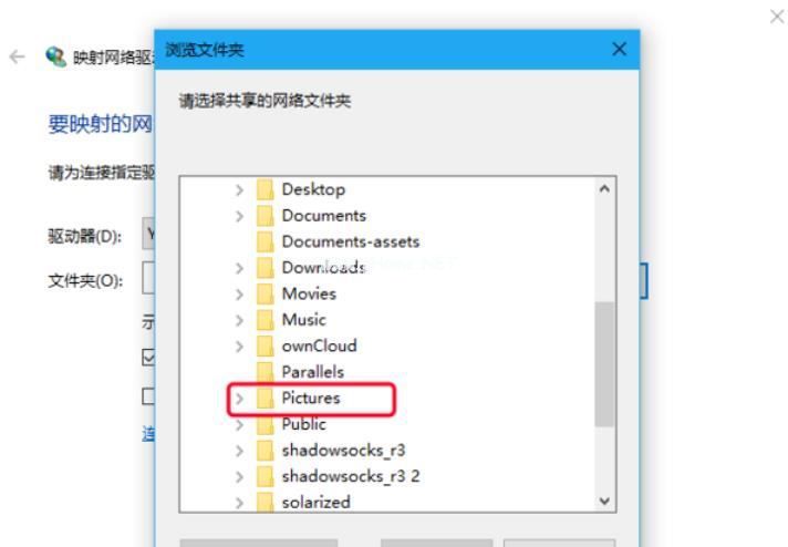 3、可以看到,此时我们所要映射的“Pictures”网络文件夹已经建立成功。