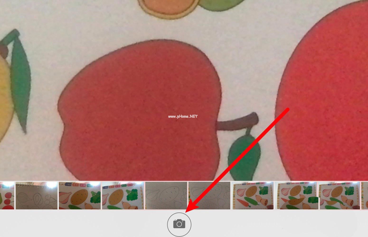 打开应用,点击右边的拍照图标。