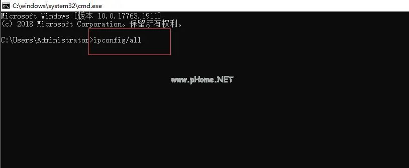 输入“ipconfig /all”命令按Enter键。