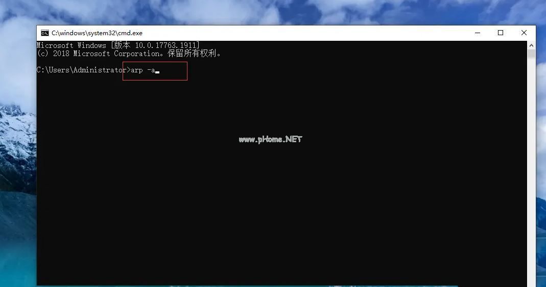 3、打开“命令提示符”,输入命令“arp -a”按回车键。