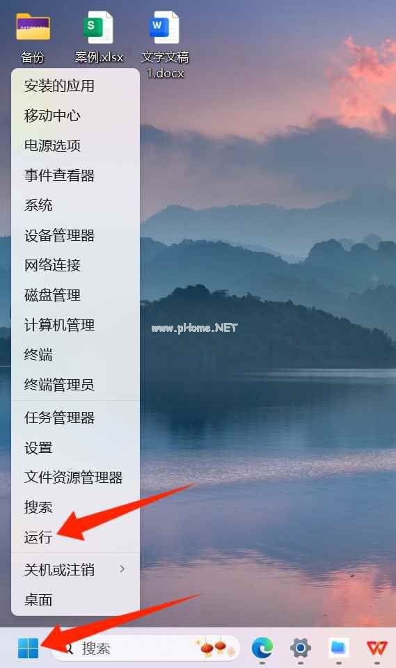 在电脑屏幕左下角右击【开始】菜单,在弹出的菜单中选择【运行】选项,也可打开【运行】对话框。