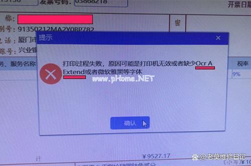 提示:打印过程失败,原因可能是打印机无效或者缺少Ocr A Extend或者微软雅黑等字体,如下图