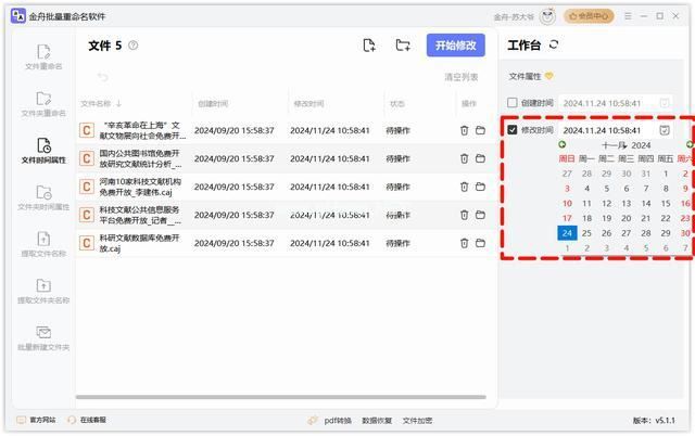 步骤5:设置好了后,点击“开始修改”即可完成文件修改时间的伪装!