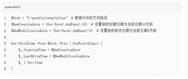 $NewCreationDate = (Get-Dare).AddDays(-10) # 设置新的创建日期为当前日期10天前