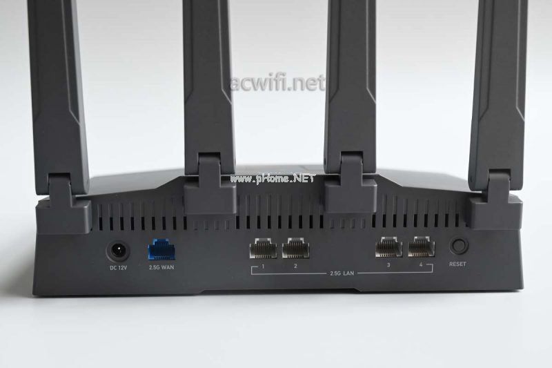 背面一个2.5G WAN和四个2.5G LAN,支持双WAN。
