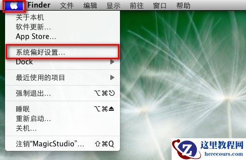 第一步 直接将打印服务器与您的电脑相连,然后在您电脑上点击苹果图标--系统偏好设置。