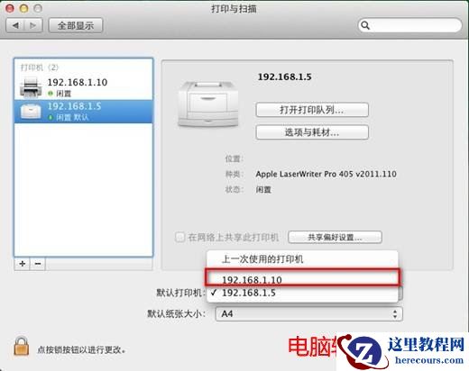 第七步 如果您的电脑上有多个打印机条目,可以在打印与扫描页面设置默认打印机。