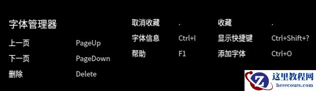 在字体管理器界面,使用快捷键 Ctrl + Shift + ? 打开快捷键预览界面。