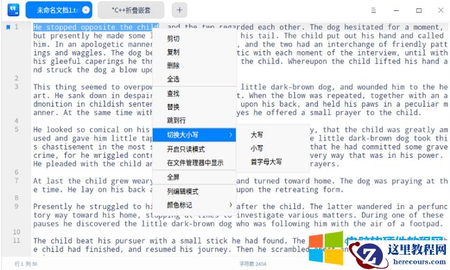 切换大小写功能可以将选中的文本全部改为大写字母、小写字母或者让首字母大写。