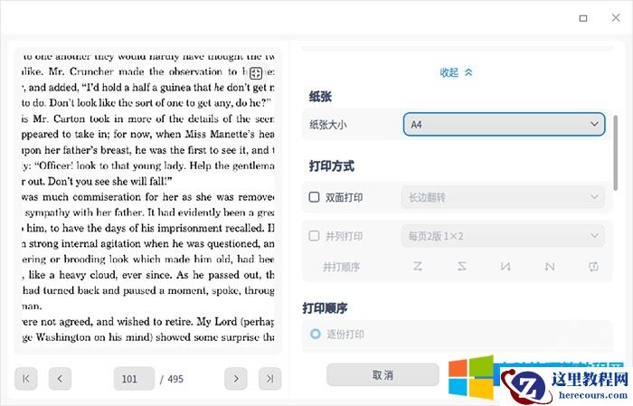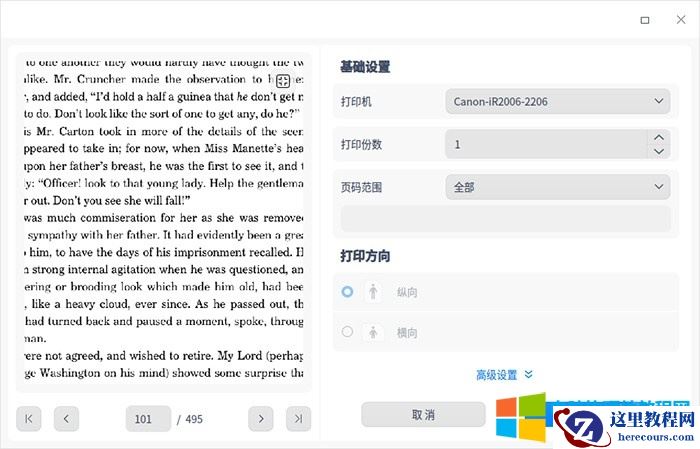 2、在打印预览界面,您可以预览文件,选择打印机并设置打印页面。