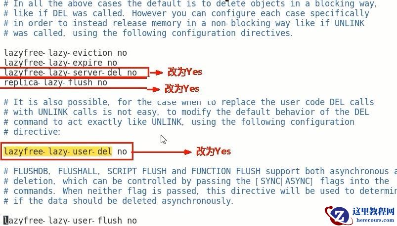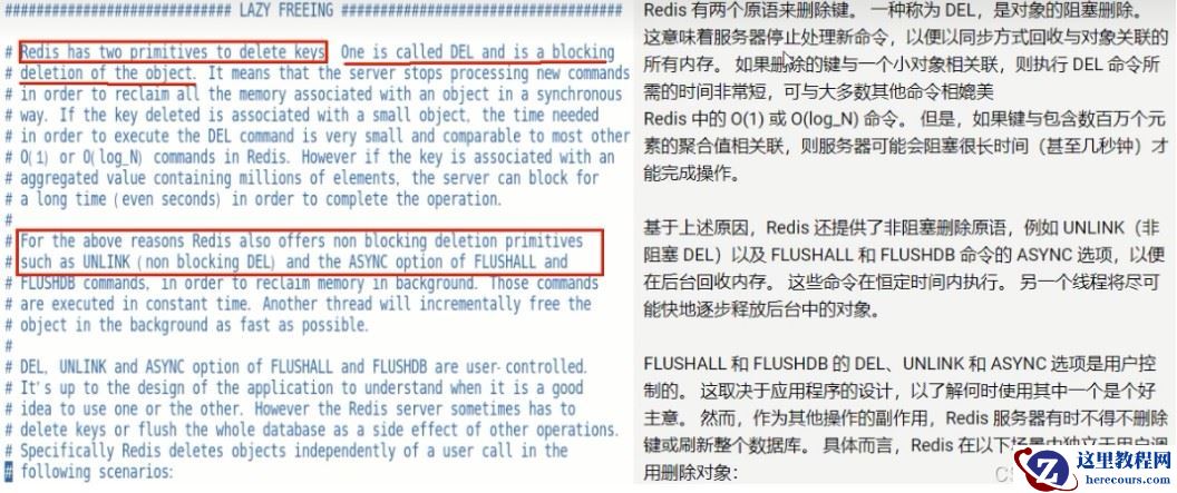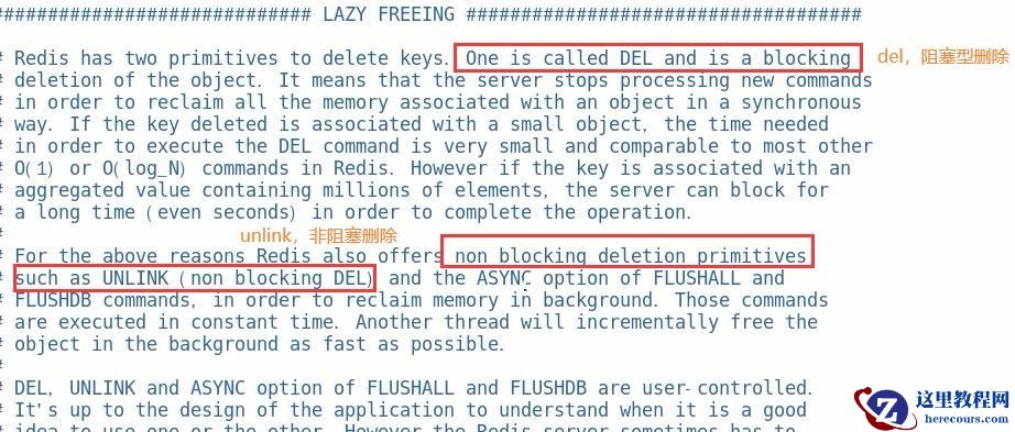 lazyfree-lazy-eviction:当 redis 内存达到阈值 maxmemory 时,将执行内存淘汰 lazyfree-lazy-expire:当设置了过期 key 的过期时间到了,将删除 key lazyfree-lazy-server-del:这种主要用户提交 del 删除指令 replica-lazy-flush:主要用于复制过程中,全量同步的场景,从节点需要删除整个 db lazyfree-lazy-user-del:修改del命令的默认行为,使之与unlink命令一样