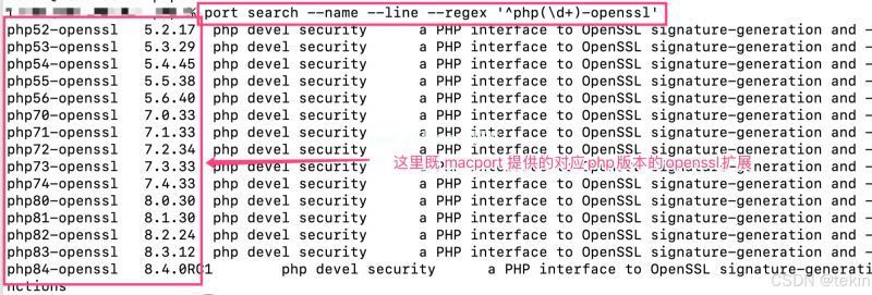 命令: port search --name --line --regex '^php(\d+)-openssl'