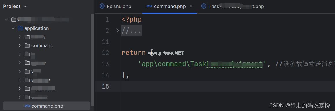 创建command模块,定义任务类:在项目application目录下创建command模块文件夹->创建任务类文件,继承