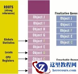 当应用程序创建一个新对象时,new操作符在堆上分配内存。如果对象实现了Finalize方法。对象的指针会放到终结队列中。终结队列是由垃圾回收器控制的内部数据结构。在队列中每一个对象在回收时都需要调用它们的Finalize方法。
