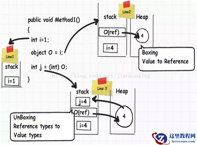 于是,两个新名词横空出世:当数据从值类型转换为引用类型的过程被称为“装箱”,而从引用类型转换为值类型的过程则被成为“拆箱”。