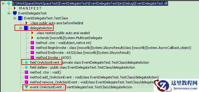 而field OnActionEvent与 public delegateAction daNew生成的field daNew是一样的