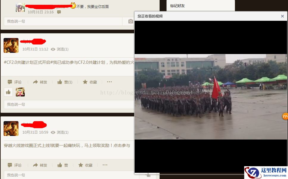 XMLHttpRequest时XMLHttp组件的一个对象,使用XMLHttpRequest可以实现不向服务器提交整个页面的情况下,局部更新网页信息。可能这么说有点抽象吧,大家都经常进QQ空间看好友动态,有些好友分享了视频,我们点击播放之后无论是在视频缓冲期间还是在播放期间鼠标跟键盘都没有丧失活动能力,我们可以继续浏览其他动态,而我们在上下滑动鼠标滚轮的时候,视频页面也跟随我们浏览的当前位置上下移动,如下图所示,这样的功能就可以通过Ajax实现。