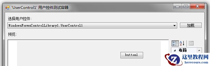2. 编译运行,编译运行(需要管理员权限)后可以通过系统的用户控件测试容器简单的测试该控件,