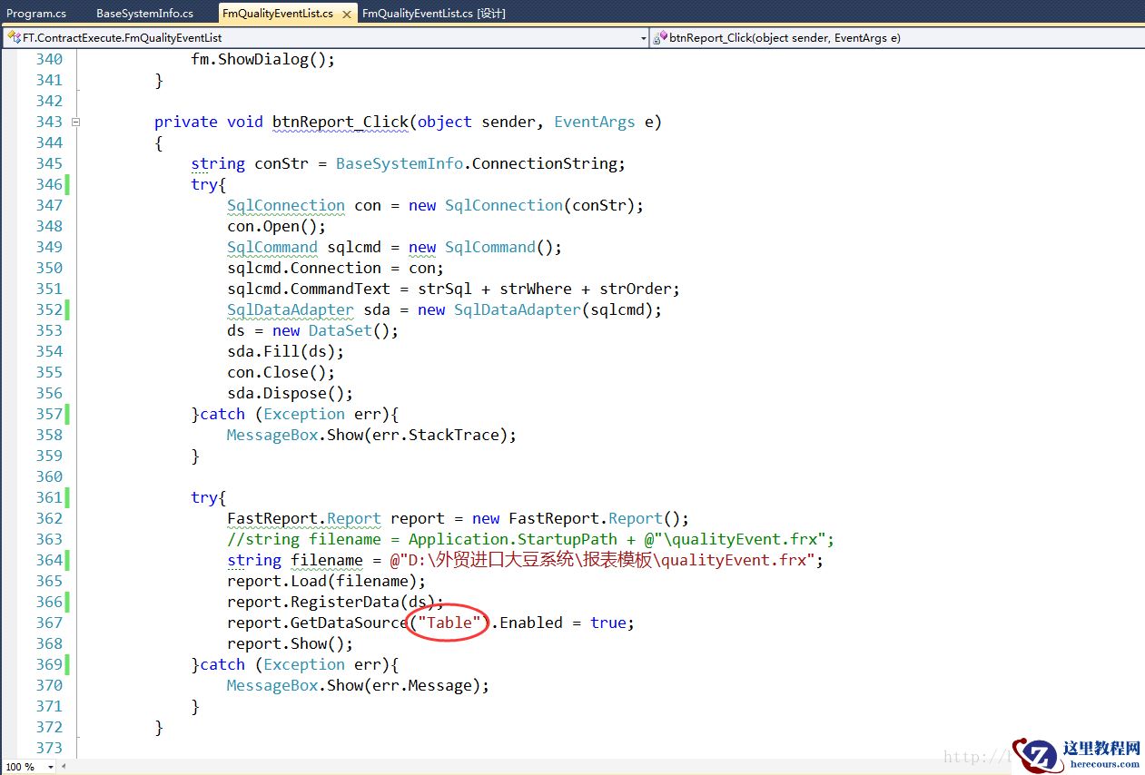 程序中我们是直接从数据库读取的数据存储到dataset中,然后付给报表,这样就不用单独传递数据连接信息,在早期的版本里是有传递连接信息这样的设置的,但是实验过发现并不好用,不如直接推送dataset简单。dataset中存储的数据表名为“Table”,如果不是这个的话可以输出一下查看,因为需要对应在报表里设置一样的名字,以便两面对应。