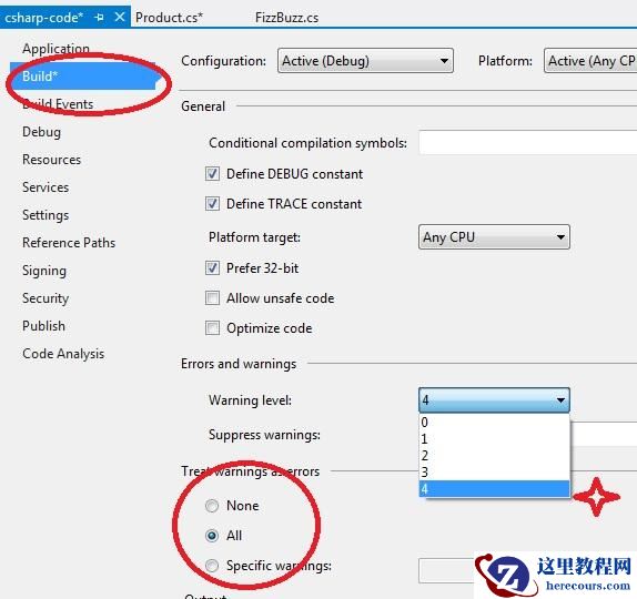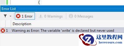 如果你注意看代码,你会发现一个变量被声明了但从没被使用过。正常来讲,我们编译工程后会得到一个警告,但仍可以运行工程而不会发生任何错误。但是我们应该尽可能地移除这些警告。通过如下步骤可以在工程上设置将警告等同于错误:
