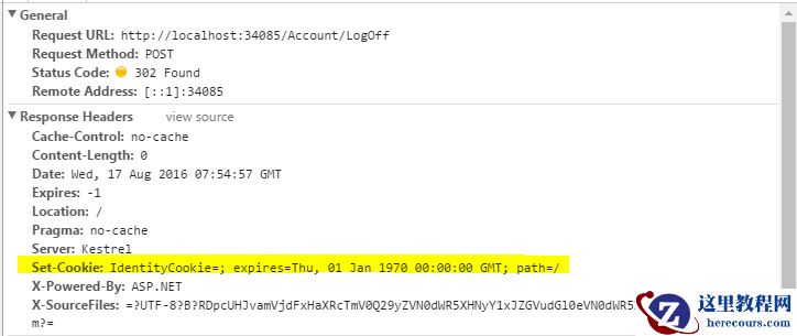 注销过程比较简单,调用HttpContext.Authentication.SignOutAsync方法即可注销,此时会给HttpContext.Response添加Set-Cookie,但内容为空。