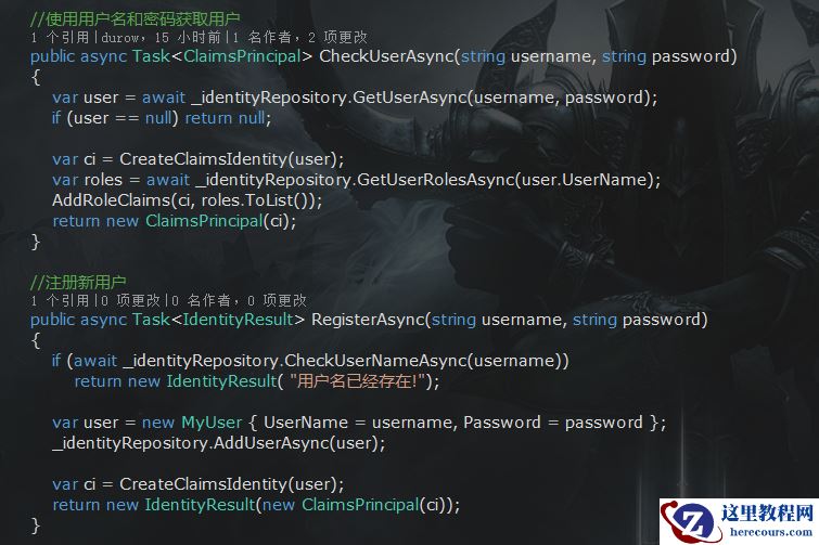 了解了用户认证的过程,我们可以自己写认证管理来代替Identity组件了,同样分为数据库操作和认证业务逻辑。数据库相关就不多说了,都写到了IdentityRepository类,只有很简单的数据操作。为了方便使用了Dapper,数据库用的Sqlite。程序在启动时会检查数据库表,没有会自动创建空表。