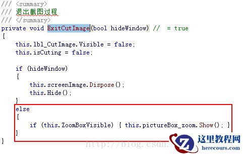 this.pictureBox_zoom.Height = this.ZoomBoxHeight;在“ExitCutImage”方法中添加代码: