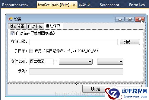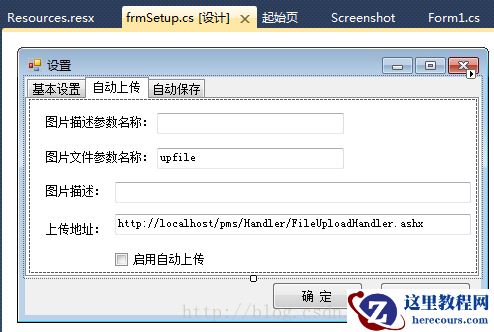 添加三个标签页,Text分别设置为“基本设置,自动上传,自动保存”