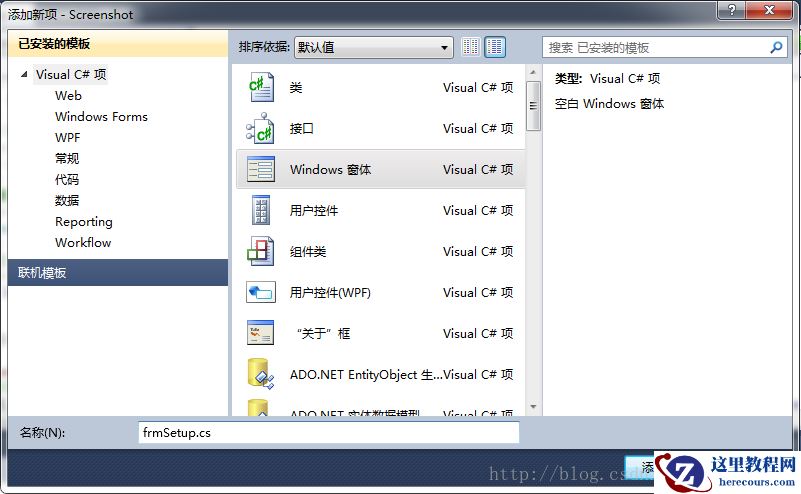 在解决方案资源管理器窗口中,右键单击项目名称,在弹出的菜单中选择:添加》windows窗体: