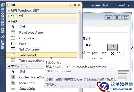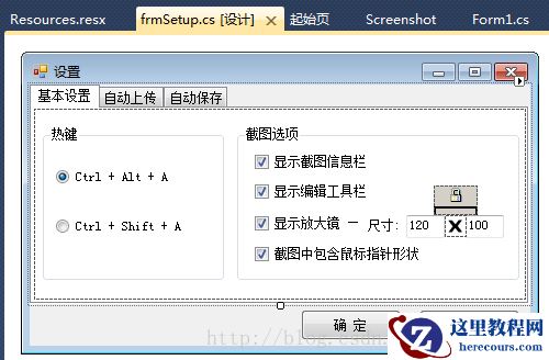 从工具箱中添加两个GroupBox,分别为“热键、截图选项”;