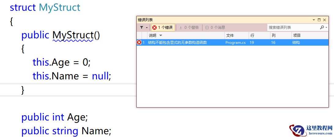对于结构,编译器总是提供默认无参构造函数,它不允许被替换,也不能在结构中为字段提供初始值,必须在构造函数中提供。