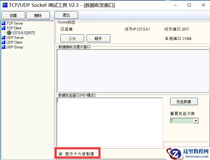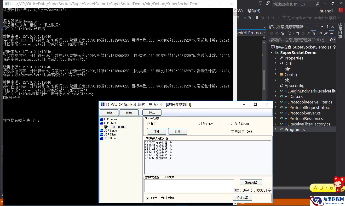 Program类通讯协议需要使用小工具进行调试,本人使用的是TCP/UDP端口调试工具SocketTool V2.大家可以直接进行下载。使用HEX模式进行发送16进制报文,服务器输出结果: