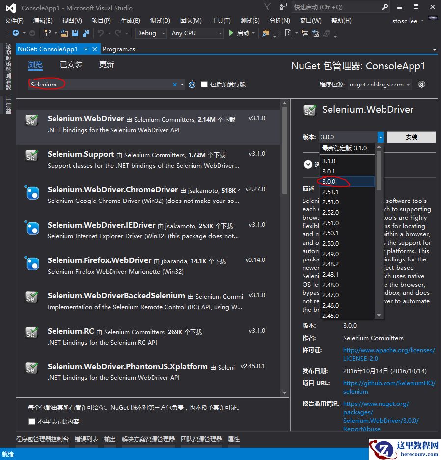 第二部:搜索Selenium,安装Selenium.WebDriver。注意:如果要使用代理的话最好安装3.0.0版本。