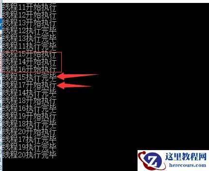 可以看到,刚开始只有三个线程在执行,当一个线程执行完毕并释放之后,才会有新的线程来执行方法!