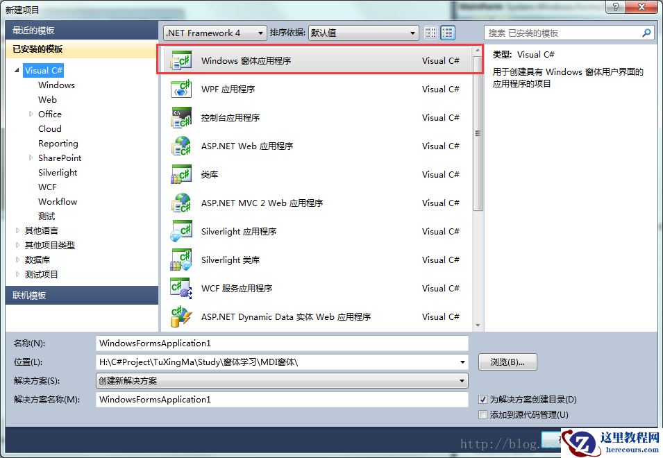 打开vs创建一个windowsform程序: