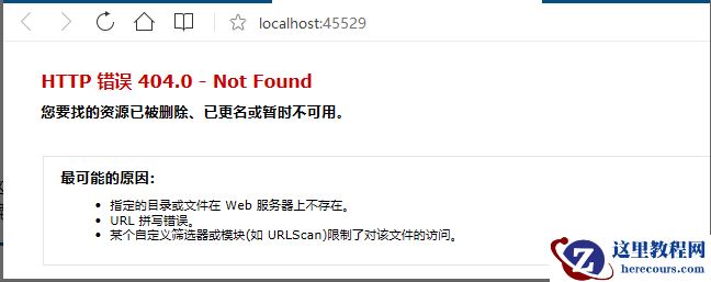 }这个例子通过用OnActionExecuting方法检查请求是否来自本地机器,如果是,编队用户返回一个“404”未找到的响应。运行结果如下图: