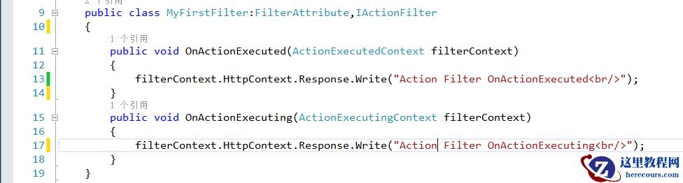 动作过滤器是可以以用于任何目的的多用途过滤器,创建自定义动作过滤器需要实现IActionFilter接口,该接口代码如下所示: