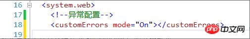 内嵌的HandleErrorException只有在配置文件Web.config中配置的CustomError 的mode设置为on的时候才生效(其默认模式为RemoteOnly),如下图所示: