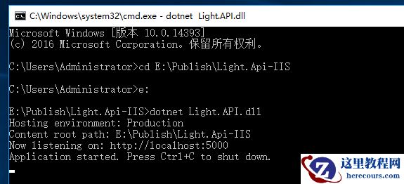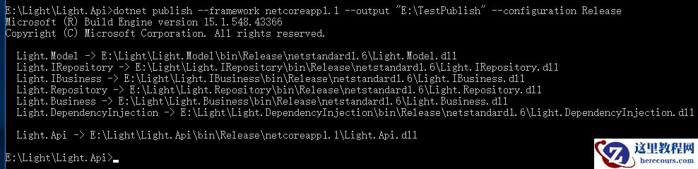 4、当然了,你还可以基于CLI的Publish命令进行发布,只需切换到Light.API根目录下,输入以下命令即可