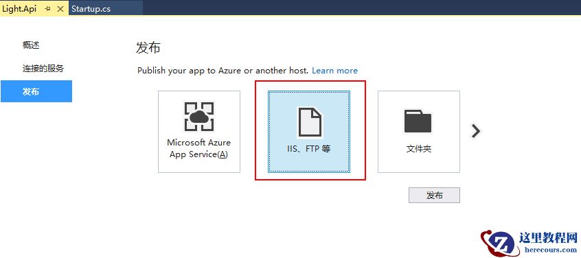 1、发布我们上一篇建好的ASP.NET Core API项目,然后选择IIS,新建一项发布配置