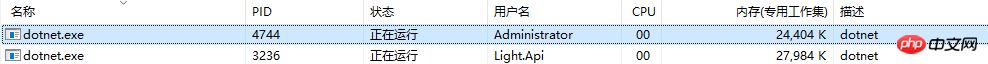 而此时你再回过头来看任务管理器,那么就会又多了一个dotnet的进程