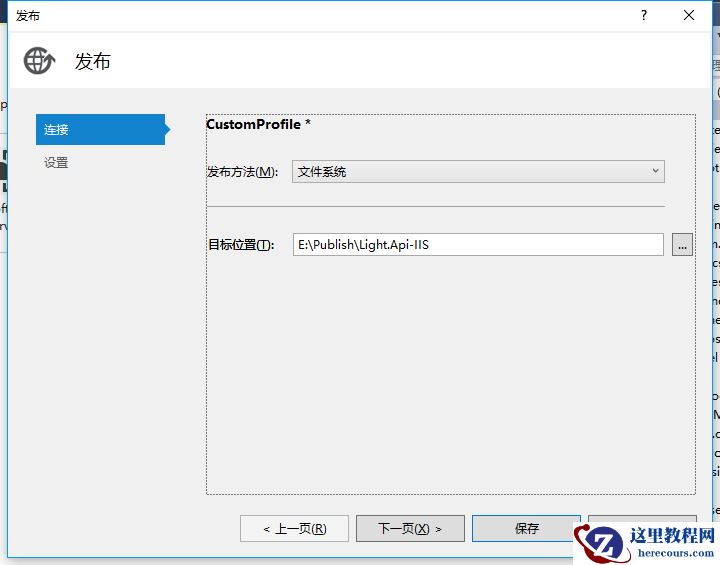 2、发布方法选择文件系统,然后设置一个发布路径