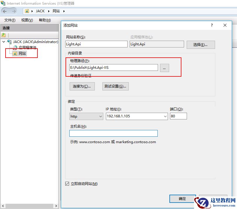 三、在IIS中添加网站