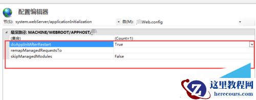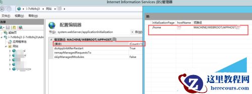 在左上角配置节点选择system.webServer/applicationInitialization,其他配置如红圈中,如下图所示: