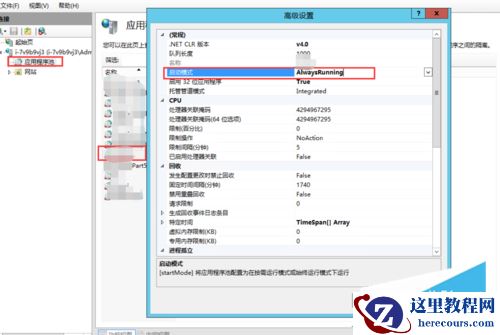 (1)、启用应用程序池(AlwaysRunning):保证应用程序池在第一次创建或者被回收后,能自动再次重启运行。