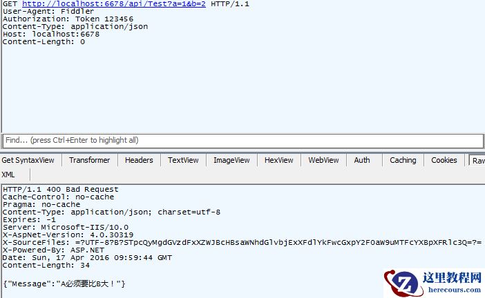 }这个Filter就提供了模型校验的功能,如果未通过模型校验则返回400错误,并把相关的错误信息交给调用者。他的使用方法和AuthFilterAttribute一样,可以针对Action、Controller、全局使用。我们可以用下面一个例子来验证: