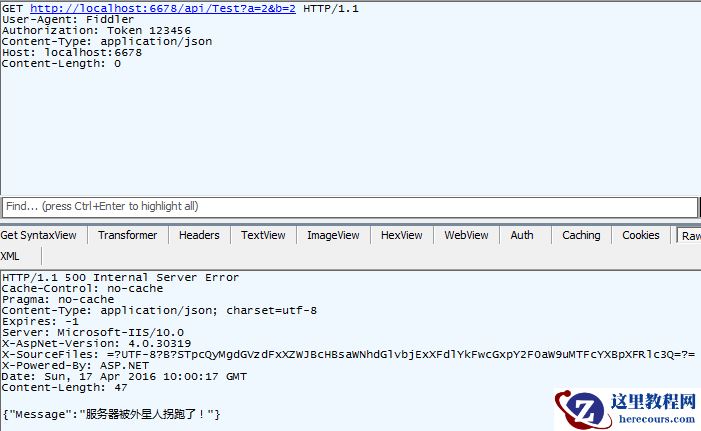 }我们定义了一个Action:在不同的情况下会抛出不同的异常,其中一个异常是我们能够预料并认为是调用者传参出错的,一个是不能够处理的,我们看一下结果: